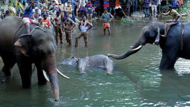 五月下旬,在印度南部喀拉拉邦(Kerala),一頭飢餓的大象因為棲息地環境惡化,不得不走出森林覓食。兩名男子竟然主動給大象送來一個看來多汁香甜的菠蘿。大象當然不知道,糖衣下其實埋藏了炸藥。爆竹在大象嘴裏引爆,上下顎及唇舌都被炸得血肉模糊,造成骨折;灼熱的炸藥再穿過食道,毀傷胃部。大象負傷走到河流中心,將口鼻浸在冰冷河水,以紓解痛楚。但那陣劇痛令牠難以吞嚥,肺部亦出現大量積水,身體變得虛弱。救援人員牽來兩頭大象,試圖把牠引出岸邊,送往醫院救治,但牠只是巍顫顫地站立在水中央,始終不願離開。