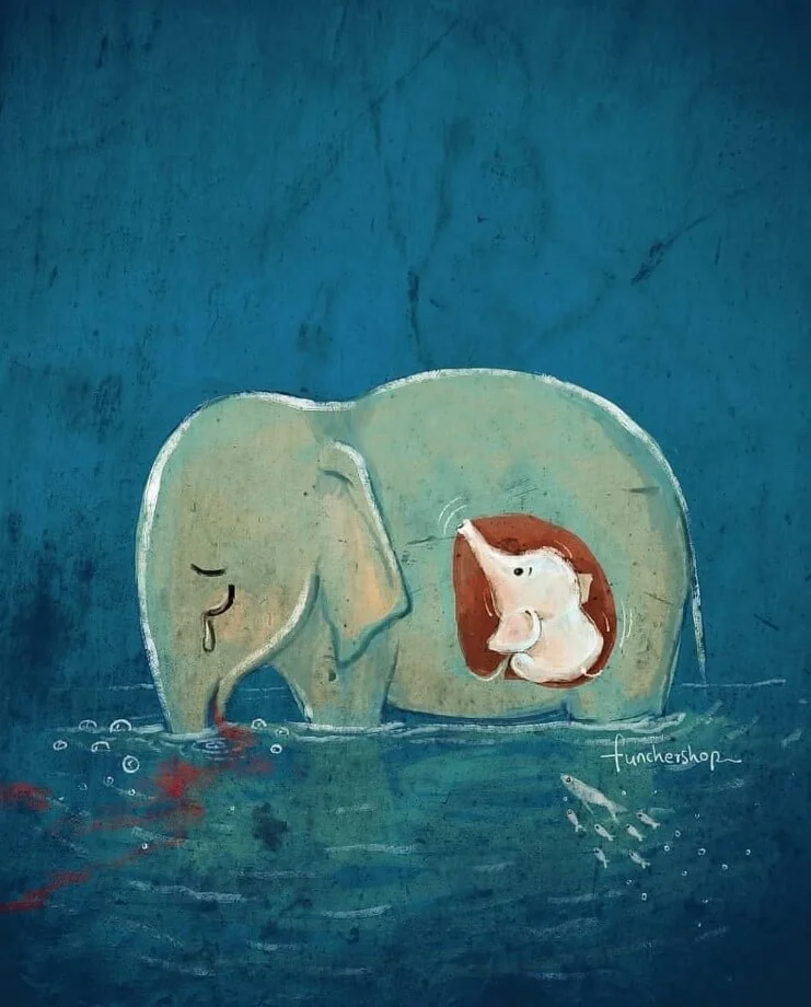 四天後,大象宣告失血過多,在飢餓及痛苦中死亡。直到驗屍解剖時,人們才發現,死時只有十五歲的大象,原來懷有差不多兩個月大的胎兒。這宗一屍兩命的慘案,引起了全球的關注。「#KeralaElephant」、「#KeralaElephantMurder」成為了社交平台的熱門標籤,藝術家們也紛紛畫下哀傷的母象,希望喚醒人類對動物的同理心,不再以殘忍方式殺害動物。