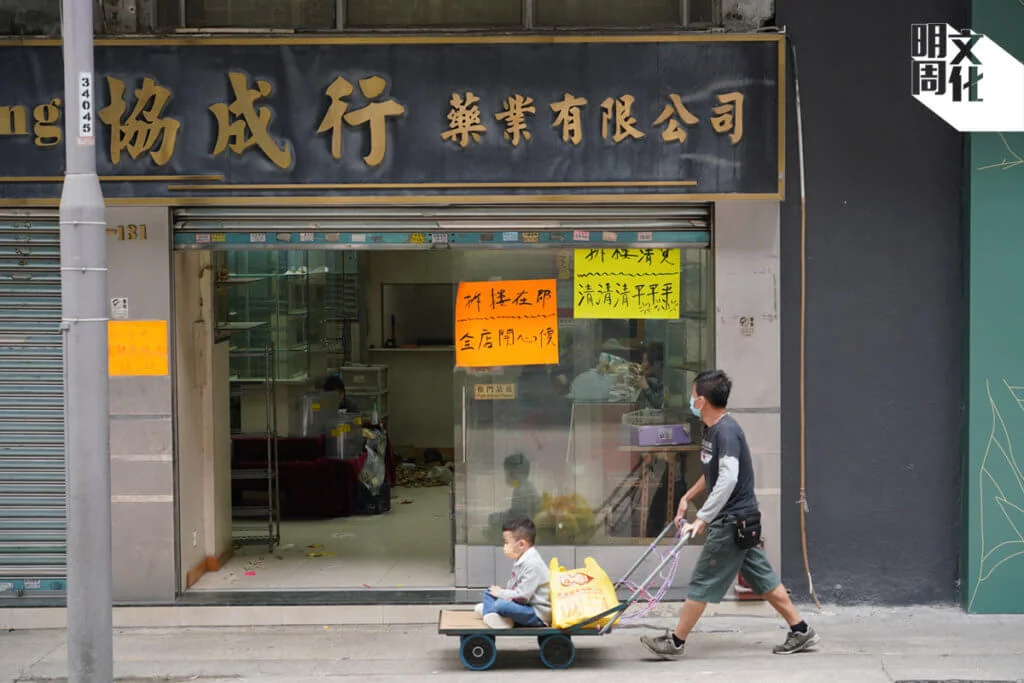 然而,這天協成行的舖前卻貼上「拆樓在即」、「全店開心價」等告示,店內玻璃架上的藥材海味幾近清空,只剩下一塊大靈芝,兩個員工正在忙於將之切割入袋,準備搬走,「靈芝留來自己煲湯飲,間舖今天就要把鎖匙交給巿建局人員,政府要來收樓啊!」高妹的姊姊卓大姐說。