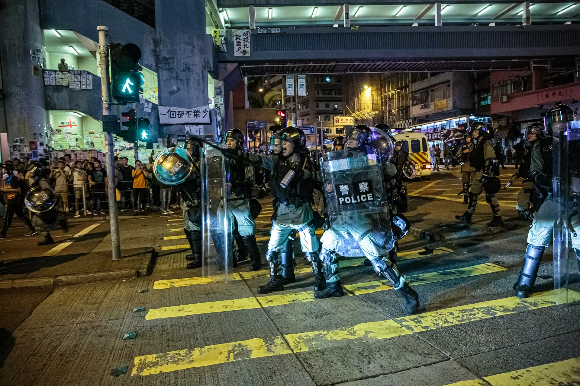 防暴突佔馬路 街坊被嚇倒
