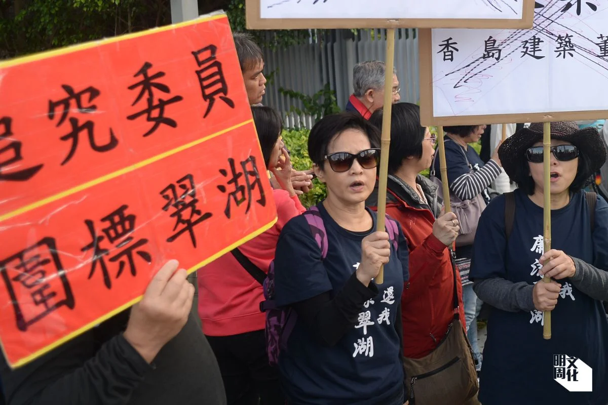 二〇一五年,全港業主反貪腐反圍標大聯盟聯同多名翠湖花園業意於法院外高叫口號反圍標。(《明報》資料室圖片)