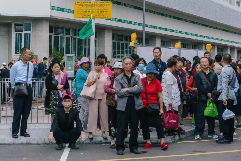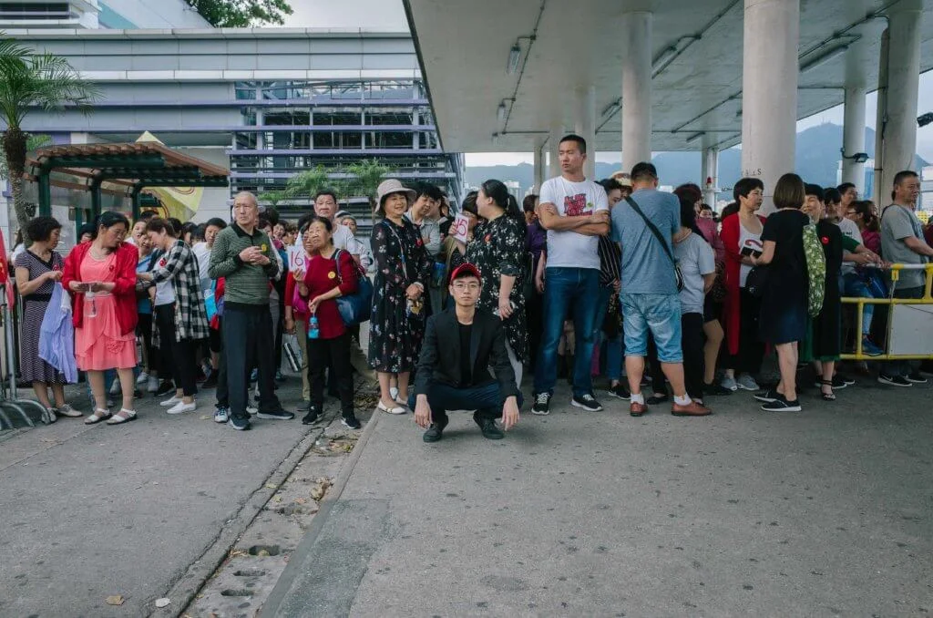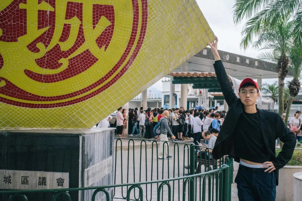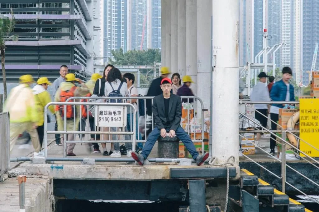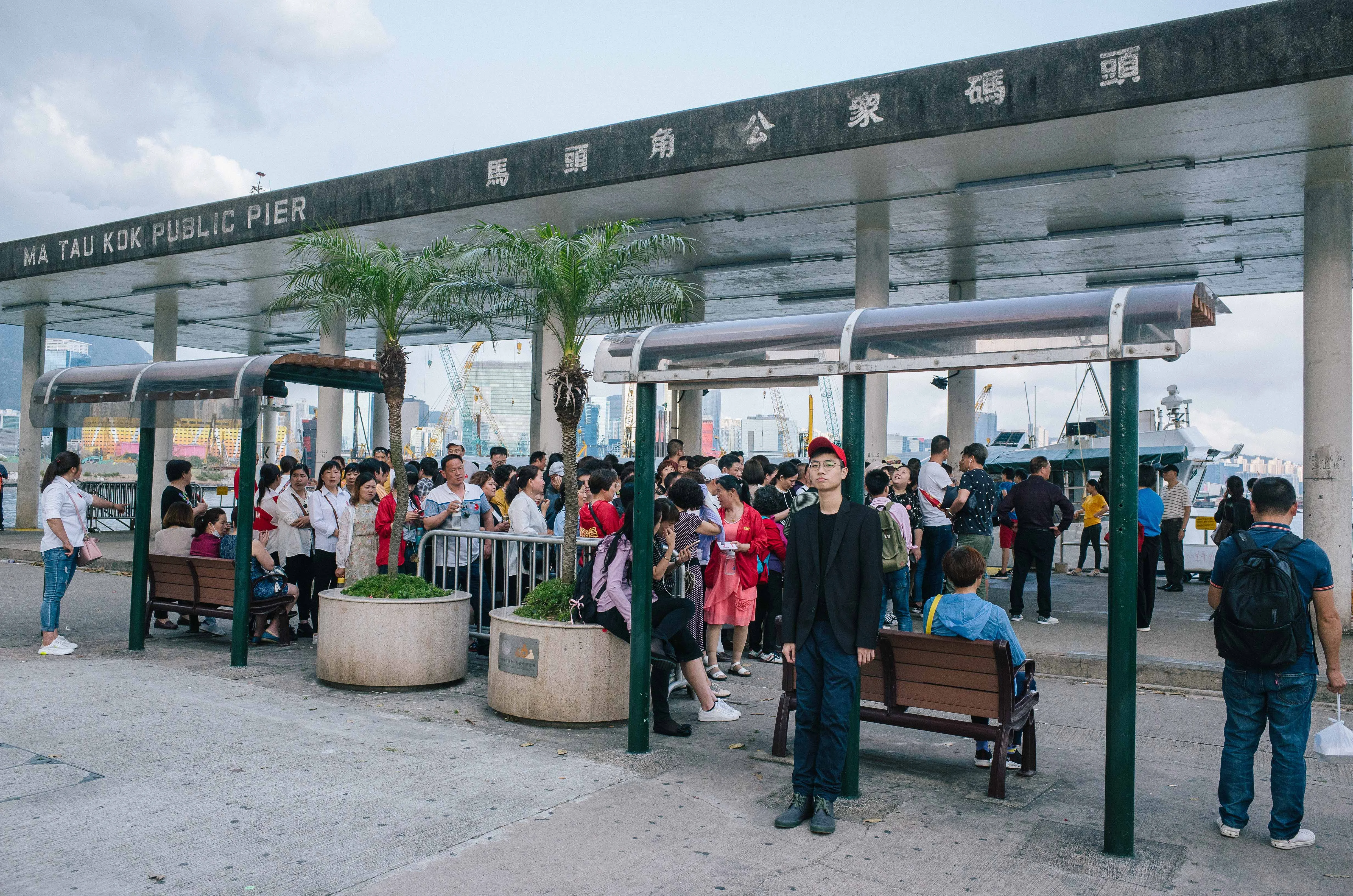 眼見旅行團逼爆居住地,他感到無奈,卻無力改變。「明明這是我的家,為何出入反而顯得不自然?」二〇一九年,當時就讀公大電影設計及攝影數碼藝術的他,展開了為時半年的攝影計劃《客》,作為其畢業作品。所謂「客」,意思是旅客,也指「主客」的「客」。身為土瓜灣人,他嘗試模仿遊客的打扮和動作,融入其中,紀錄當下,作為尋找歸屬感的旅程。