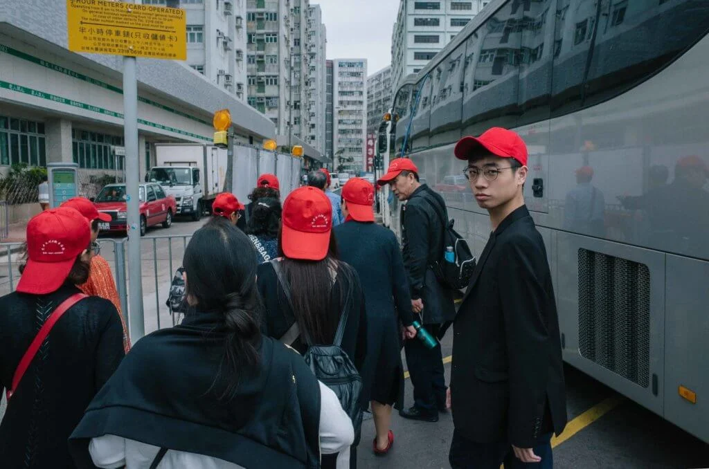 姚昊謙真人靦腆,相中的他面對鏡頭卻神色自若。他尷尬地笑說,那不是他本人,而是角色扮演,代表土瓜灣街坊,因此用盡全力去抒發內心的無奈。鏡頭沒刻意捕捉或扭曲旅客的神情,而是呈現最真實的面貌。起初他還擔心會引來打罵,後來發現遊人之多,令自己可以完美融入,根本不被放在眼內。紅帽男曾穿梭在旅遊大巴之間,跟隨旅行團的步伐,一車車走入社區,又曾蹲在路旁,闖進中南海與紅雙喜的迷霧。整輯相顏色飽滿鮮明,雖有一頂紅帽作提示,有時他的身影還是被淹沒在人海,分不清主客,有如在玩「Where’s Wally」遊戲。