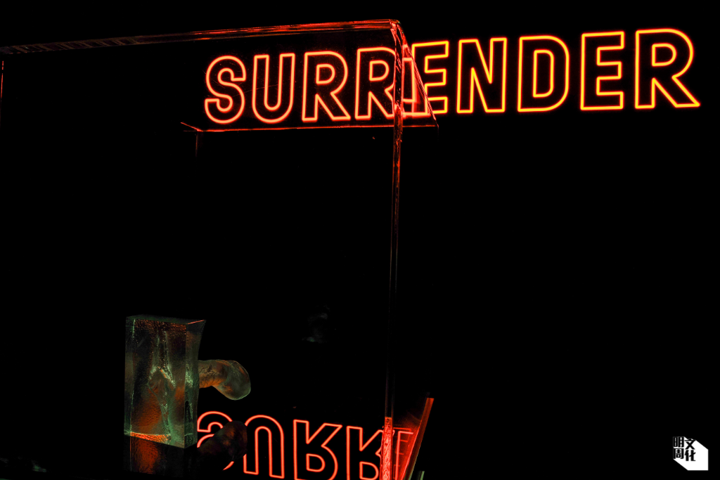 走進第一個展室「Surrender Room」(臣服室),玻璃櫃中凝重地展示着女性陰部的模型,空氣中播放着唯一的「House rule」——一段以性感聲線讀出的詩意文字:「與幻想調情,放縱想像力,穿上衣服,溫柔一點。此處用不着羞恥心。」(Flirt with fantasies, let your imagination run wild, keep your clothes on, go gently. No shame here.)