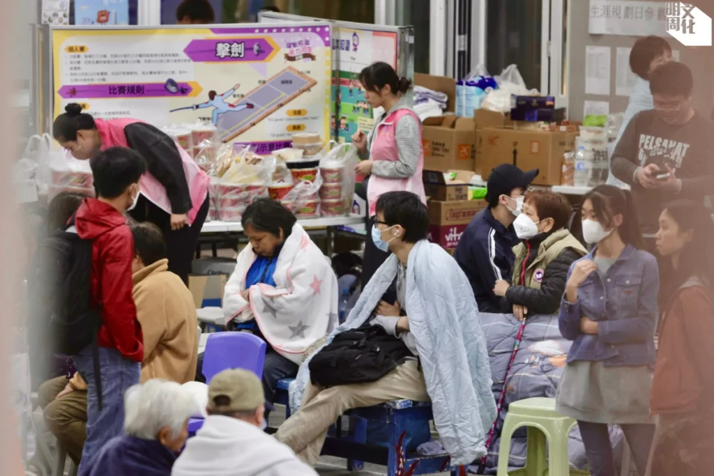 【大埔大火的第一天晚上|特寫】香港半世紀最嚴重火災 漫天濃煙、尋人啟事、滿街物資與中學操場無眠夜:找到老婆,睡哪兒都可以。