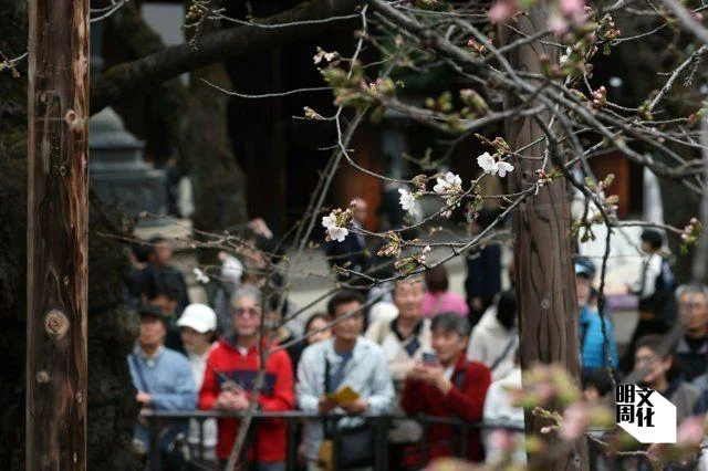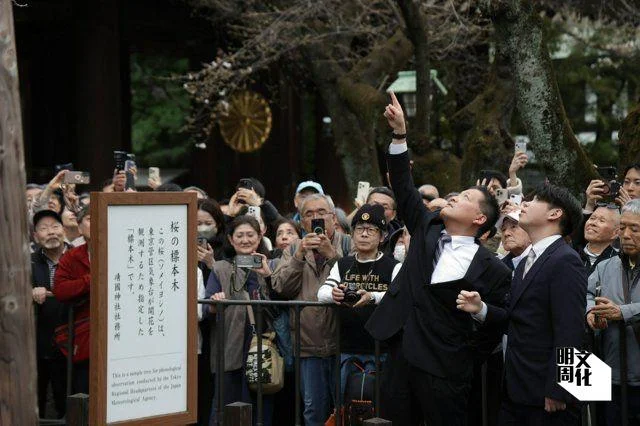 日本氣象廳今日(十九日)公布東京都心櫻花「開花」消息。職員於靖國神社(千代田區)之標本木,目測確認染井吉野櫻開出六十一朵。