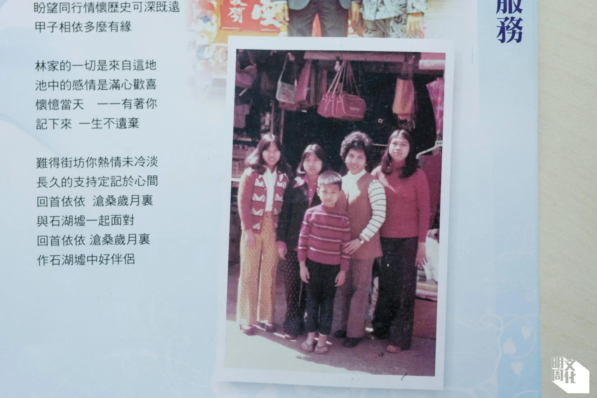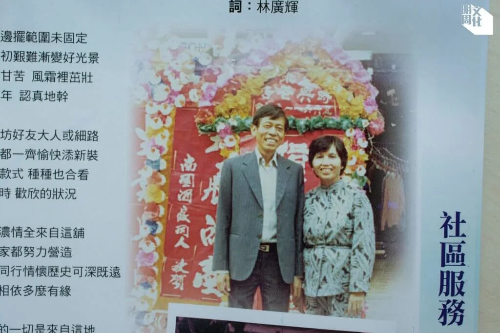 「呢度個個都叫我大家姐,因為我係九兄弟姊妹入面最大。」林碧華的父親林毓瑤,五十年代已在石湖墟經營街邊檔售賣服裝。小時候跟父親擺檔的日子她還記憶猶新,「嗰時一嗌走鬼,爸爸便把我放在裝着貨物的木頭車上,佢哋唔敢搞㗎,咁就過到骨啦。」