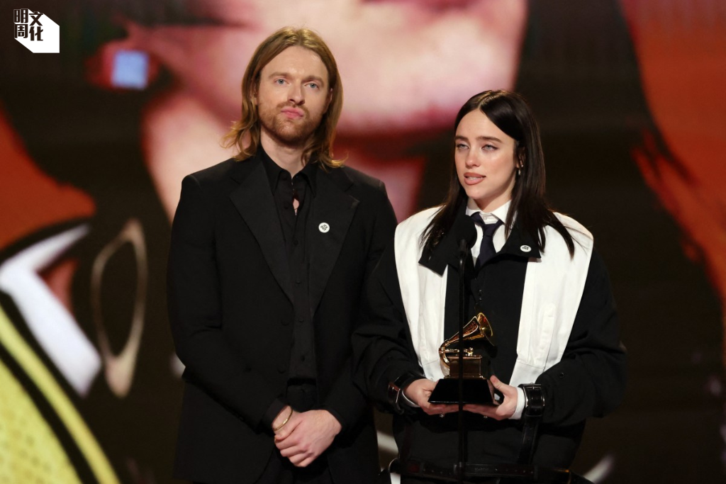 (右)Billie Eilish與(左)Finneas O’Connell獲最佳年度歌曲獎