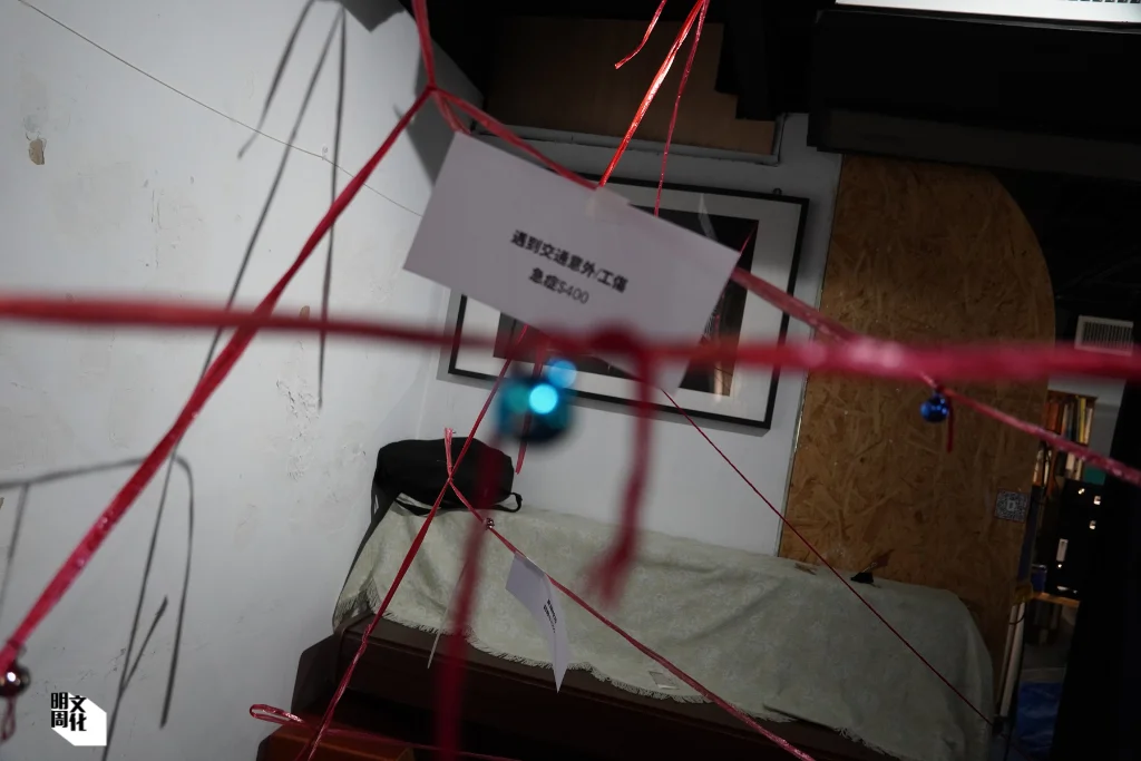 在其中一個關卡,參加者須跨越層層紅線,象徵他們工作遇到的挑戰,當中不少是執法部門的檢控陷阱,如罰款3000元、手推車被充公…都是他們工作中隨時可能面對的難題。