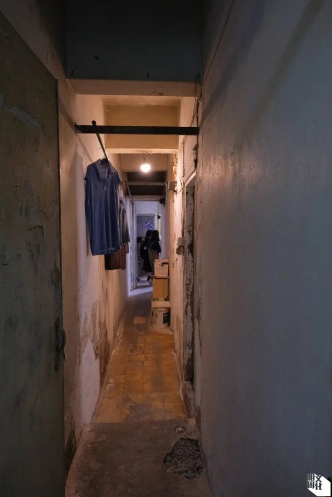 啤酒雄有留意最新出台的簡樸房政策,他自知自覺舒適的小天地並不合格,因為它既無廁所,亦不足呎。「獨立廁所梗係無啦,到時要搬我也沒辦法,除非三間房打通變成兩間,便有獨立廁所。但房東都不搞了,都等拆樓啦。」他指指頭上水漬斑駁的共用廚房天花板說,一個月前他聽到「嘭」一聲,比 A4 紙更大的天花石屎剝落,跌在地上。他說,樓都要塌了,還盼業主重修嗎?