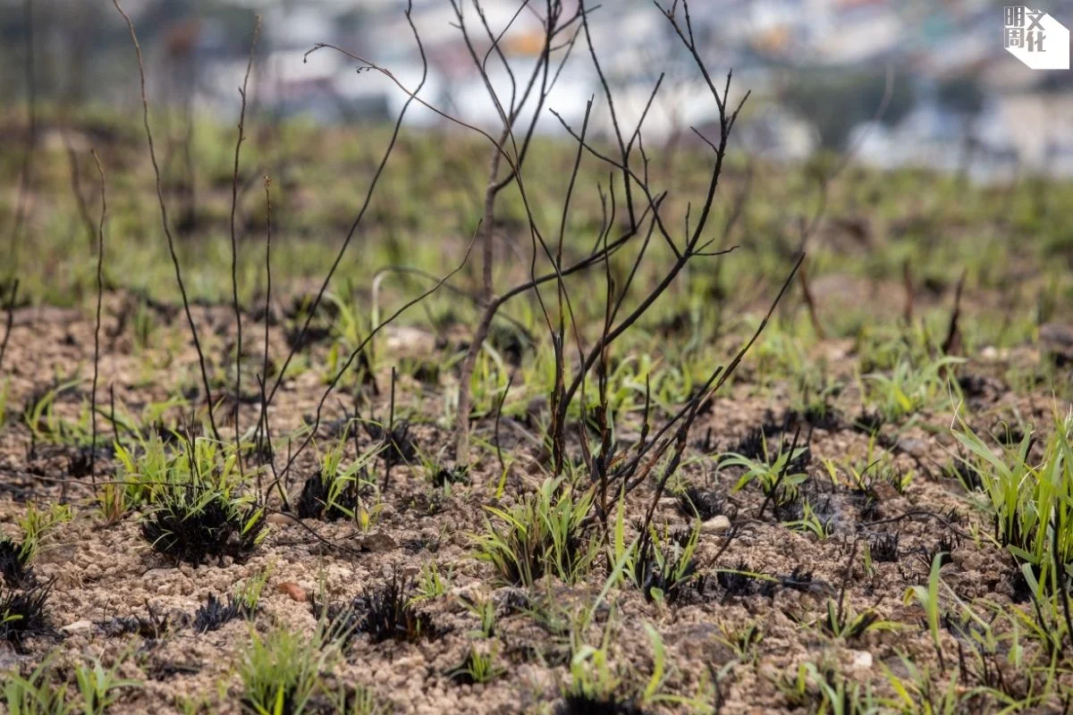 大火發生後一個月,雞公嶺焦土已長出鮮綠野草苗。行山人士途經時,也搭話說,「不過啲草燒完生得好快」。