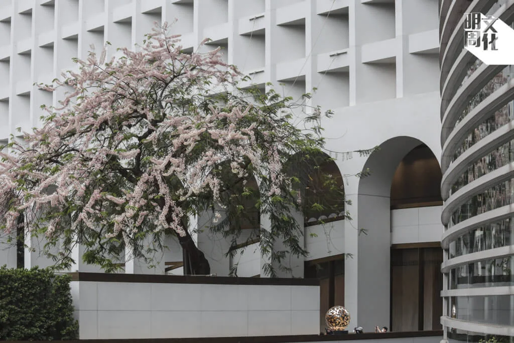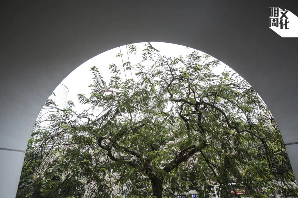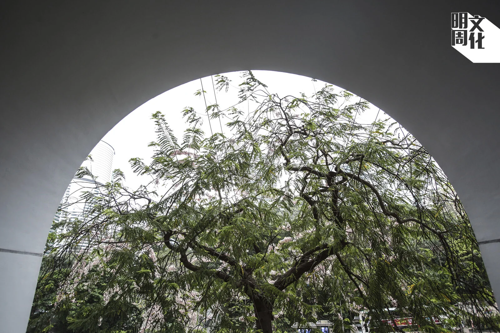 全香港只有兩棵「節果決明」,分別位於迪欣湖和美利大廈。美利大廈建於1969年,前身為政府寫字樓,由有份設計大會堂的英國建築師Ron Phillips設計。2017年,美利大廈改建為酒店,由Foster+Partners負責,盡量保留大廈的建築特色,包括與外牆呈45度角、有遮陽作用的窗戶,以及底層停車場高達三層的拱門。走上酒店平台,透過拱門看節果決明,像被畫框框住一樣,構成獨特的風景。