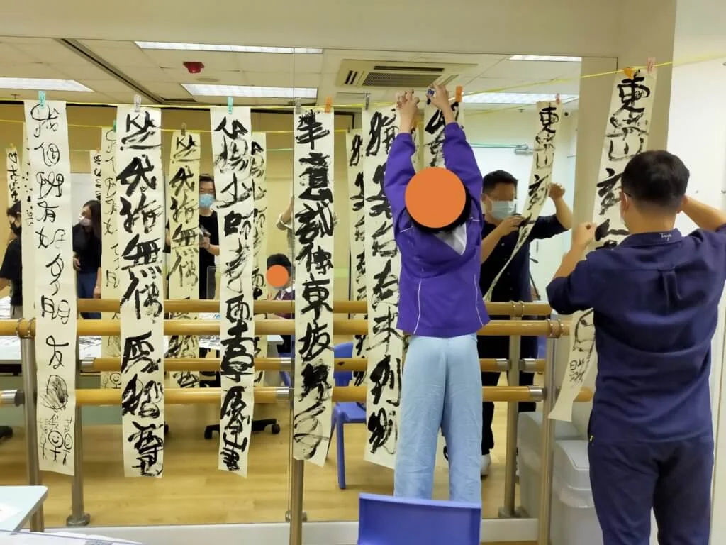 即使這班孩子可能還是在畫紙上重重覆覆繪出鐵路路軌,或不斷剪出同一心愛的卡通人物,社工及導師也不制止,只是鼓勵他們繼續嘗試表達,豐富層次。「因為他沉醉的那種世界帶給他安全感,所以我們不一定要迫他離開。但希望透過這樣的engagement (參與),讓他漸漸試用不同色彩、再加幾個人物,讓他表現的世界有更多層次。」Paisley說。