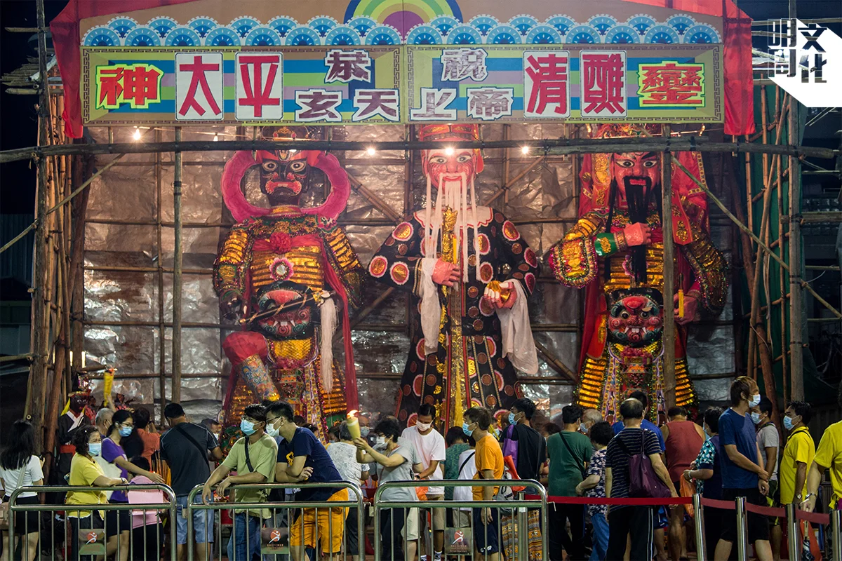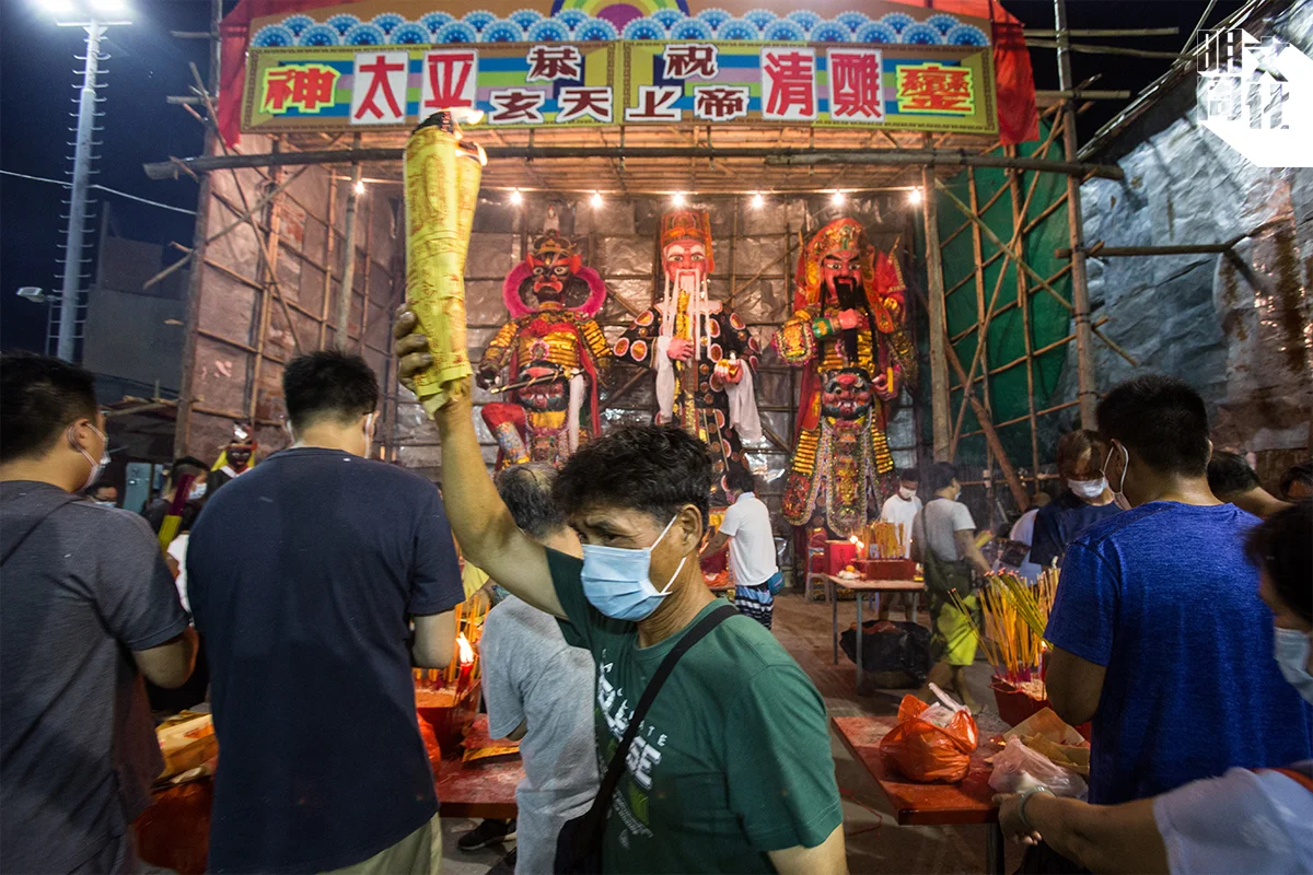 一連三日的長洲太平清醮,於今日5月17日正式開始。雖然在疫情陰霾之下,大型舞龍舞獅舞麒麟表演、飄色巡遊以及搶包山比賽今年仍是一一欠奉。但長洲「打醮」,由來自驅除瘟疫,祈求合境平安。所以就算防疫所需,打醮活動因而一切從簡,但長洲街坊仍按照傳統,將長洲島內各大廟宇的神像;大士王丶土地公及山神都於起醮前一天迎進打醮場地,為一眾前來的善信消災解厄。