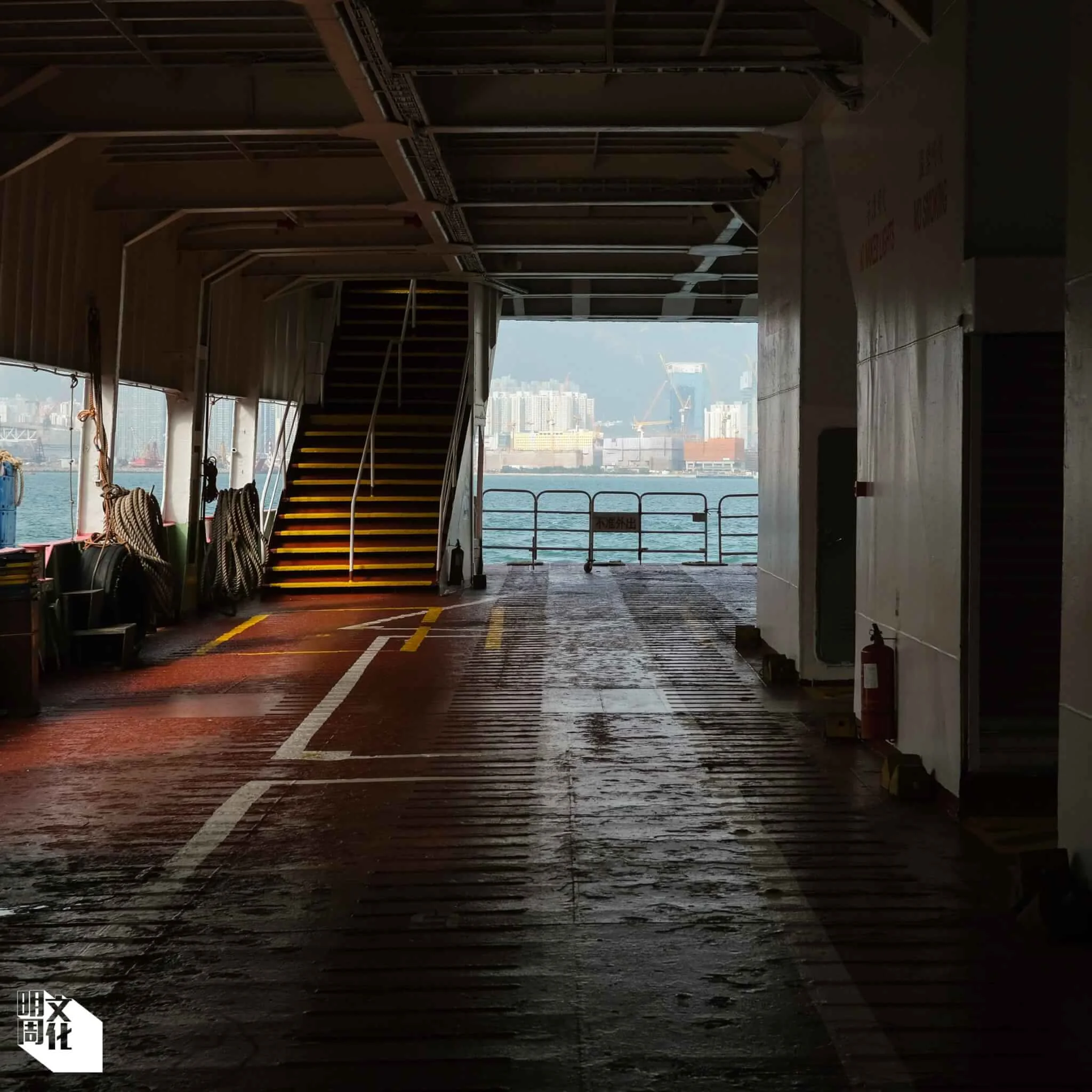 依稀記得,兒時曾隨家人體驗過一次汽車渡輪,父親把車泊好後走出車廂,帶着我到船上的小賣部吃熱騰騰的餐蛋麵,在甲板上邊吃邊注視着與船身並行的波浪,頭髮不知不覺地被吹亂了。現在回想,那半硬半軟的麵條其實很難吃,但那種混雜海水鹹味的味道卻令我深刻。廿多年過去,再次登船,在空洞的上層船艙裏,嗅着海的味道,頭髮再被風吹亂,餐蛋麵卻消失了。