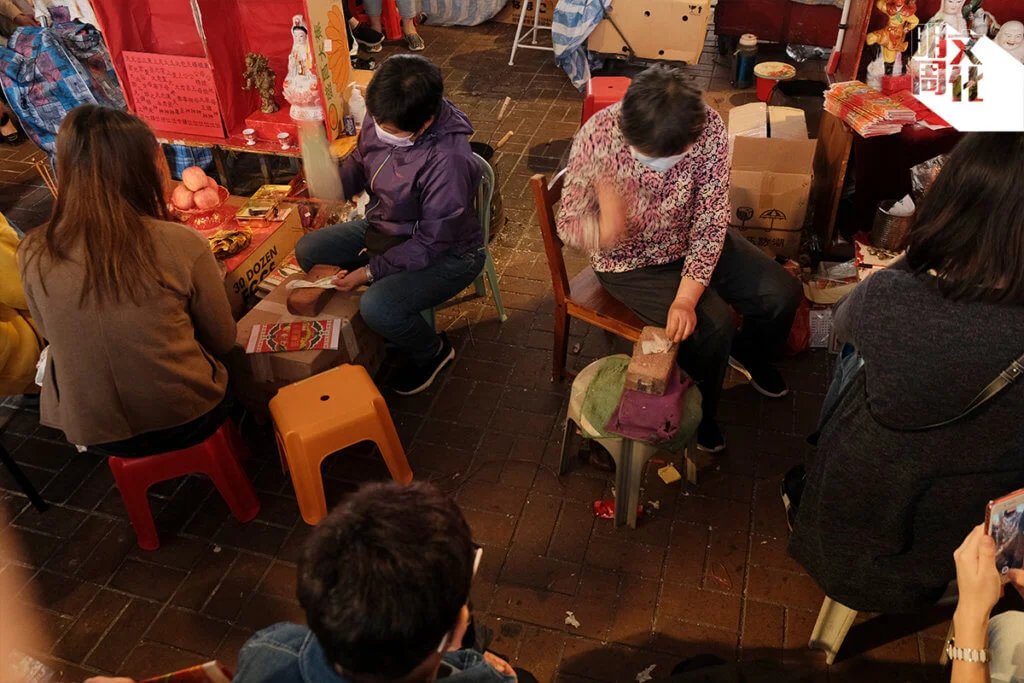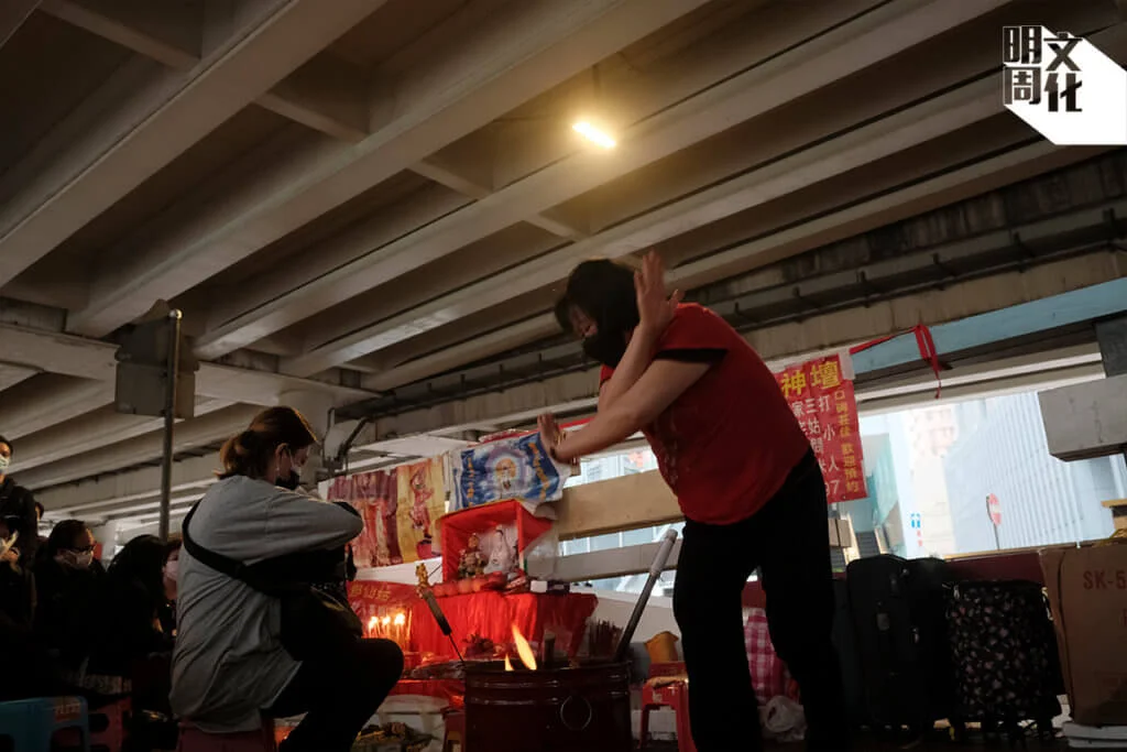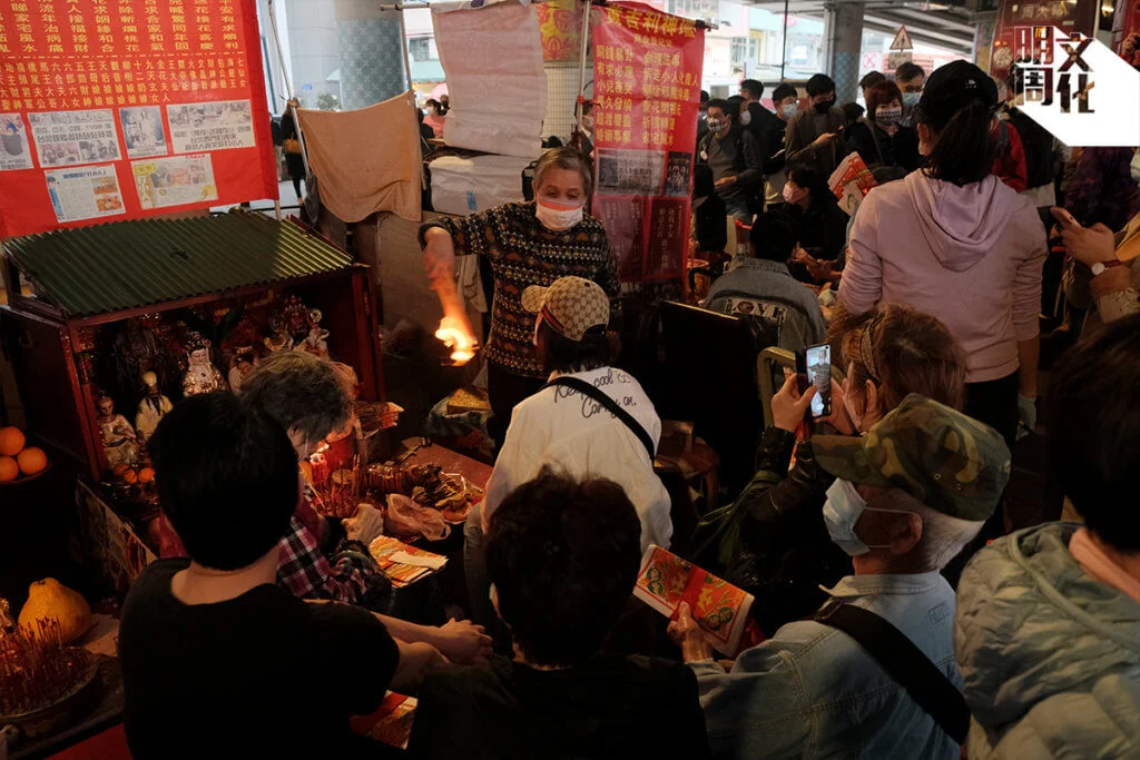 春日霧雨中,香火鼎盛,過百人聚首灣仔鵝頸橋下,你最想打的小人又是誰?排隊打小人。每檔人龍起碼二十人,以中老年人為主,也有上班族趁午飯時段溜出公司。有人為家人祈福,有人欲驅走疫情「瘟神」,有人將高官痛打一番,為港人發洩心頭之恨。一眾神婆戴上口罩或防疫面罩,用舊鞋賣力拍打「小人紙」,唸出連串咒語,又祭過紙老虎,以消災解難。
