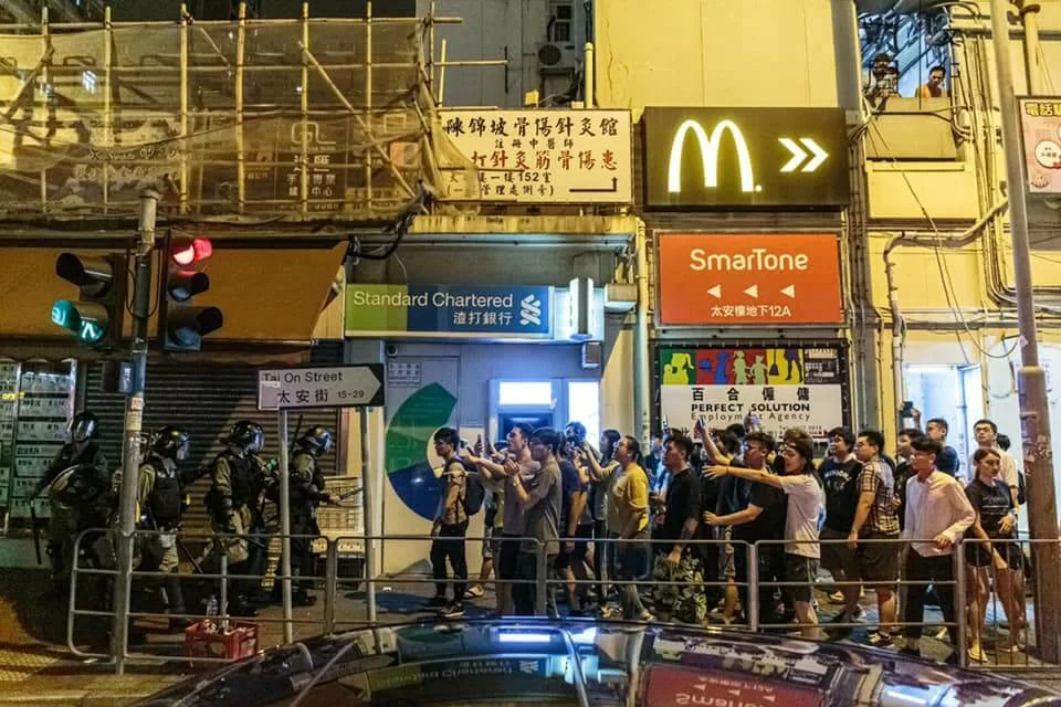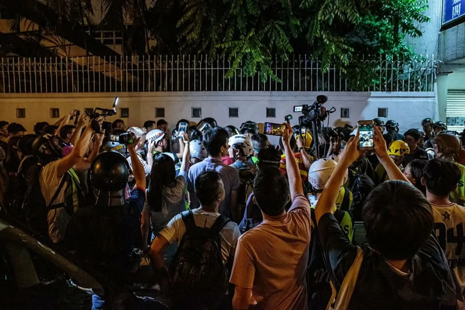 8月11日於港島的反修例示威遊行,晚上演變成警方圍捕行動,區內街坊到場聲援。