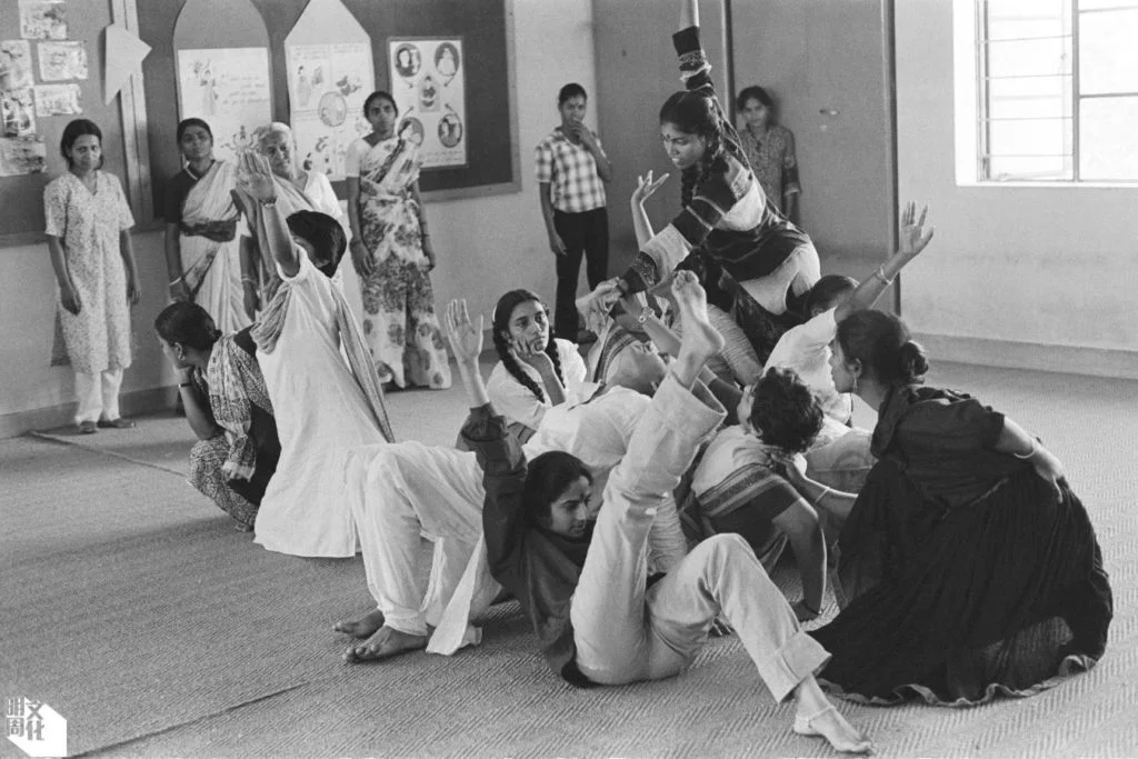 「Om Swaha」一名源自火祭使用的梵文誦經,後來當地女性以寫成腳本,揭示印度女性每日面對的家庭暴力與嚴峻的「嫁妝兇殺」問題。策展及教學項目助理王曼齡補充,《Om Swaha》當時已經是印度表演過超過一百多次的街頭劇目,而女性會在公共空間如公園、校園或一些貧窮的社區去表演,「就是想想女性可以怎樣去佔有一個公共空間去表達自己的一些不公的情況,例如其中一個情況是她們表演就是在一個反嫁妝的抗議行動當中做,去宣示自己的不滿。」而Sheba便是少數以影像記錄當時這些女性演出的攝影師。