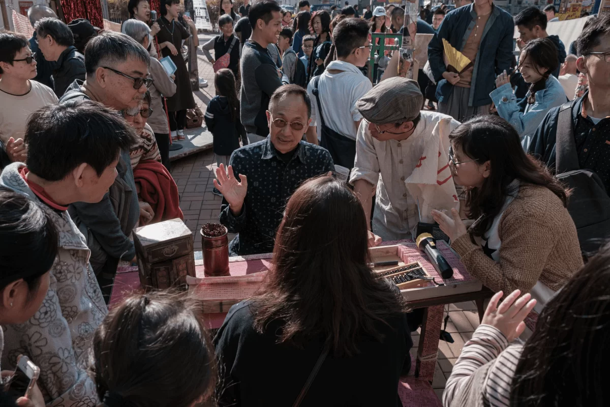 「咚咚鏘⋯⋯」街頭上突然傳來一陣鑼鼓聲,然後賣唱、睇相、賣奶茶等的攤檔流動車從四面推來,圍觀的觀眾仿似坐着時光機回到六七十年代的大笪地。《我哋大家在獅子山下相遇上》流動劇場,最近每星期周末會走訪不同社區演出。