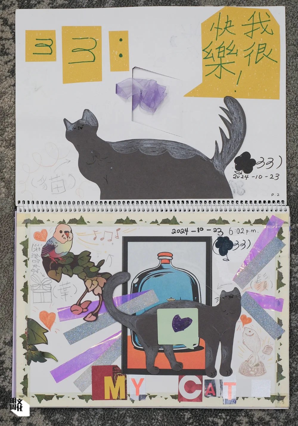 三三製作了花朵與貓的畫面