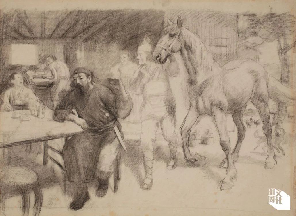 徐悲鴻《秦瓊賣馬稿》(1919–1927)