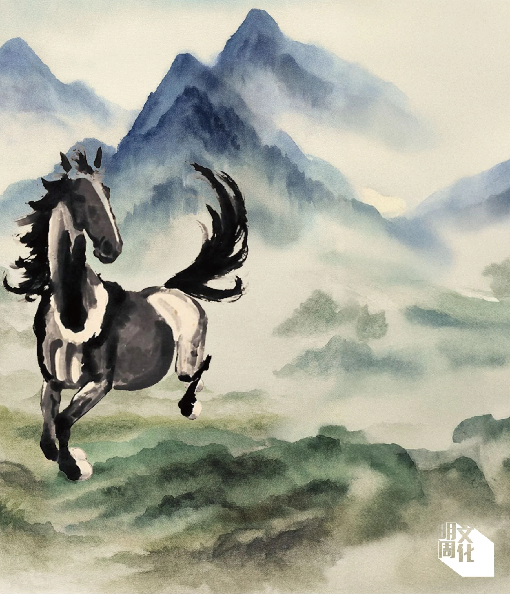 他筆下的馬,不止是奔馳在紙上的身影,苗條卻氣貫長虹,鬃尾飛揚間藏着不屈的怒吼,目光透露濃鬱感情。