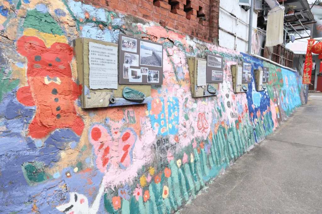 葉慶龍主任介紹三門仔的打卡熱點──佈滿貓咪圖案的壁畫牆。