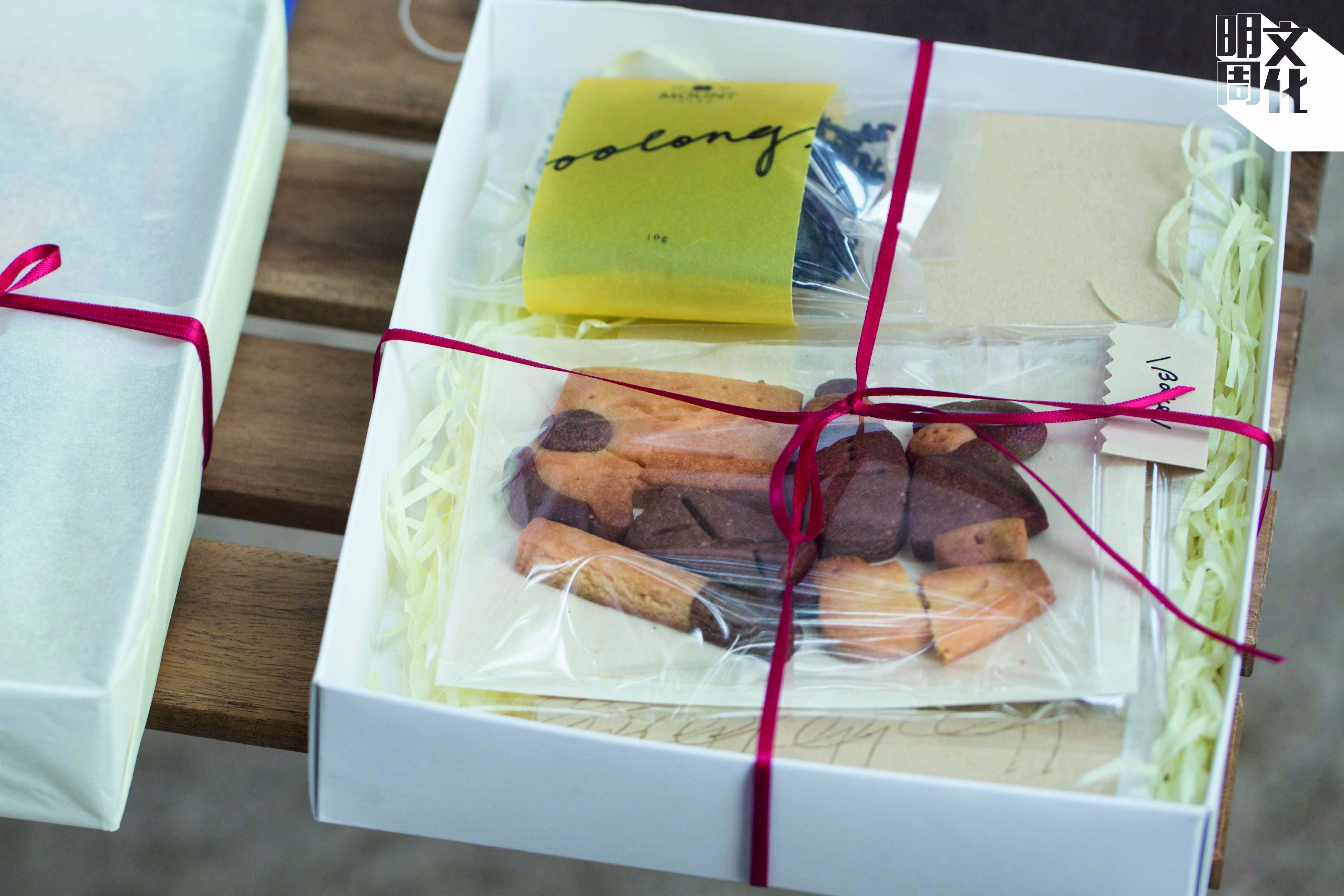 Sharon續說:「見山出版了書,其他店長會覺得是自己屋企的東西,要做些什麼。印藏書票或書籤,好像很簡單,我們真的去想如何更豐富。」就像她雀躍介紹的,有包覆書本的布書套,還有趁過年推出的禮盒,把書中一篇故事的人物、海鷗,甚至煙蒂化為曲奇,與小說一同收於禮盒內。「是一個家庭的東西,很有歸屬感。」Sharon說。訪問當天,嘉俊才首次看到,從沒想過筆下的角色物件會變成曲奇餅,滿臉驚喜。這些種種,都令他覺得事情比想像中更好玩,「一本書出到來,可以演變成不同東西,那些都很得意。可能有些人讀完會做其他事,譬如想寫隻歌、畫幅畫,那些是有機會發生的意外、但我們未知,都是很好玩的。」