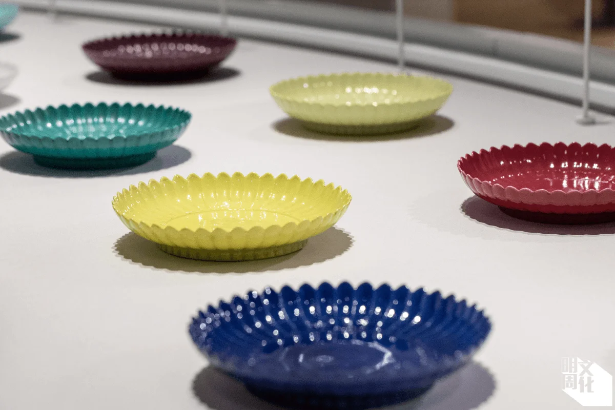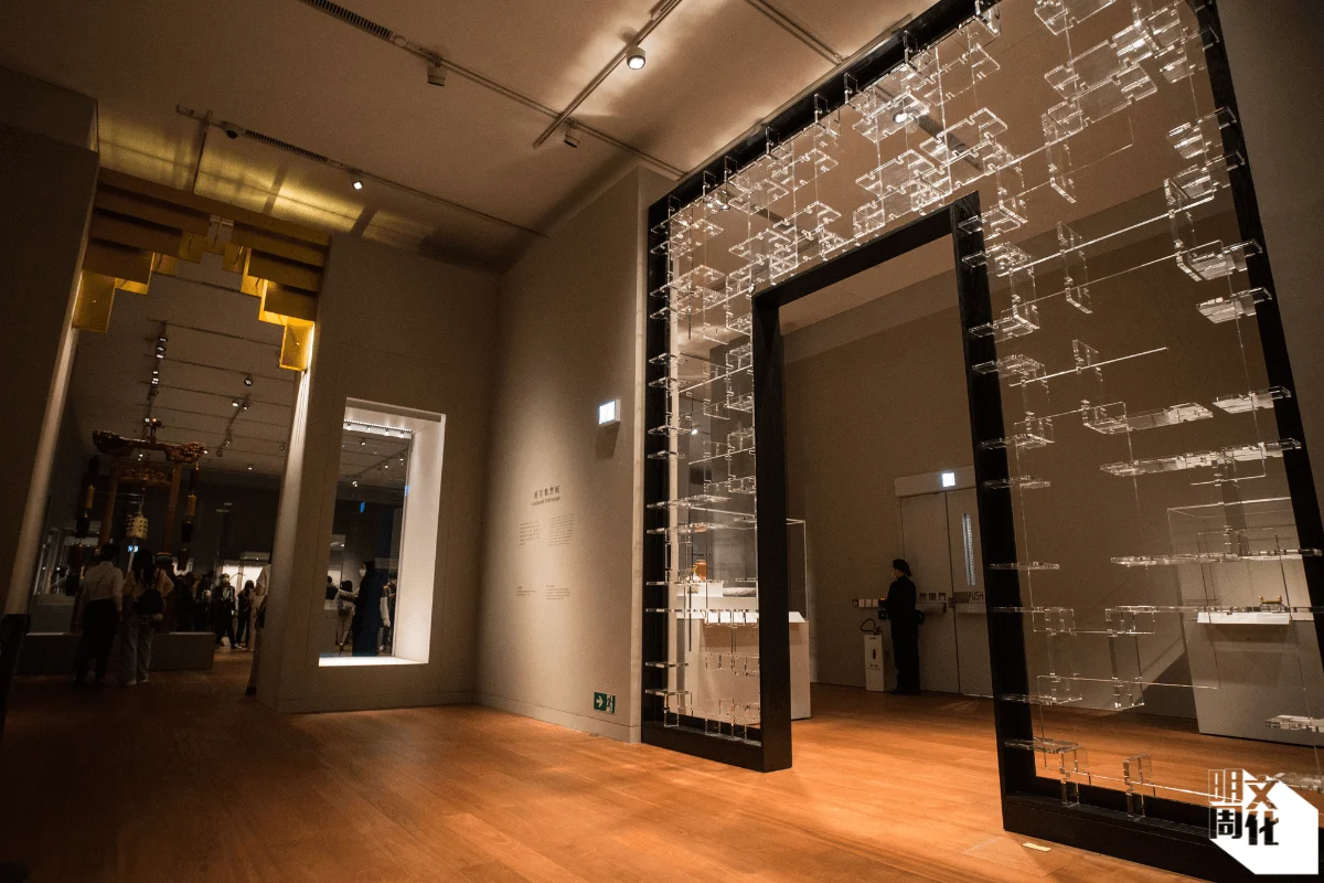 相比之下,展廳五至七較多與香港有關。展廳五《器惟求新: 當代設計對話古代工藝》展示古代工藝,也與香港設計師合作,以當代設計角度切入;展廳六《同賞共樂:穿越香港收藏史》以本地收藏史為主軸,呈現早期香港多間重要公共博物館與傳統文物收藏的關係;展廳七《古今無界:故宮文化再詮釋》的策展最為不同,有別於古代典藏文物展示,展出由六個本地藝術家的大型多媒體創作,包括梁基爵的音效作品《慶》,糅合古今不同樂聲,許方華的《星垂平野》則據清代天文學文獻重構星空。