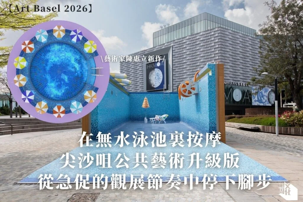 還記得2023年在香港藝術館外出現的「無水泳池」嗎?它是本地藝術家陳惠立的沉浸式藝術裝置《路過蜻蜓》。今年,他再度交出新作品,將泳池「升級」為按摩池,可讓人坐下逗留並且享受電子按摩滾輪。這座藝術裝置將於年度藝術盛事巴塞爾藝術展香港展會(Art Basel Hong Kong)展出,取名為《靡靡摩摩池》,甚具玩味,希望在這個節奏明快的展覽中,為參觀者營造一處喘息的空間。有興趣的朋友千萬不要錯過。
