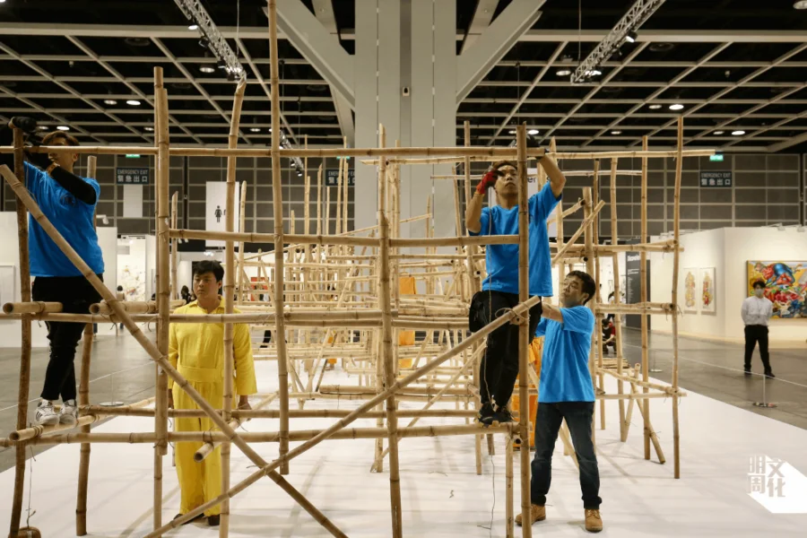 每年Art Basel Hong Kong最受關注和熱議展區,莫過於「藝聚空間」(Encounters),散落在密密麻麻的藝廊和熙來攘往的人流之間的大型裝置藝術作品,總是憑強烈而鮮明的視覺語言,吸引觀眾駐足、凝視。像在二〇一七年,由中國藝術家沈少民的創作《峰會》,卡斯特羅、胡志明、金日成、列寧及毛澤東五位共產主義領導人的遺體雕塑,並列展會中央供人圍觀,儼為歷屆Art Basel Hong Kong中最難忘的場面之一。