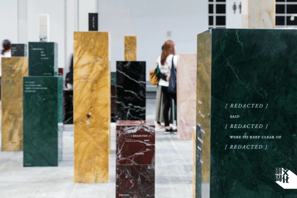今屆焦點之一是《The Wine Dark Sea》,作品概念源於二〇一六年澳洲瑙魯檔案洩漏案,事件曝光了政治避難者被當地離岸拘留中心虐待的慘況,她將檔案資料與希臘荷馬史詩《奧德賽》相似的字句配對,仔細雕刻在大理石上。古往今來,戰爭一波未平一波又 起,人們被逼離開故土,流散之書不斷續寫。如此沉重的作品,是年輕藝術家Stanislava Pinchuk接受Encounters委託而創作的,她於 一九八八年生於烏克蘭哈爾科夫,現於薩拉熱窩生活及工作,透過繪畫、裝置、紋身、電影和雕塑等不同媒介,記錄戰爭造成的傷痛與流散。她於的疫情期間拜師學習墳墓製造,把技巧應用於這七十六塊方形石碑上,作品矗立於大型藝術展銷會中,異常突出,格外莊重。