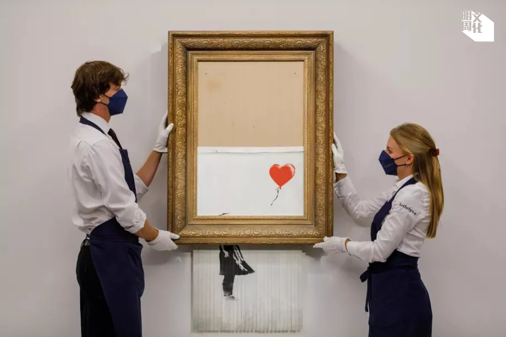 Banksy筆下經典之作,市場向以天價求之。其最搶手的版畫、油畫與雕塑,往往直接脫胎自街頭塗鴉。《氣球女孩》《Girl with Balloon》描繪一位女童伸手指向心形氣球,原為二〇〇二年倫敦街頭一系列模板壁畫,於二〇一八年十月公開拍賣,作品就以一百萬英鎊(約1100萬港元)高價成交。但在拍賣官敲槌的瞬間,藏在畫框內的碎紙機突然啟動,將半幅畫作碎成條狀,震驚全場,並即時誘發世界熱議討論。其後Bansky發布片段,展示如何碎紙機藏入畫框,又表明拍賣行事先毫不知情,他本來想是碎掉整幅畫作,豈料到碎紙機會半途失靈,「綵排時明明每次都成功」。
