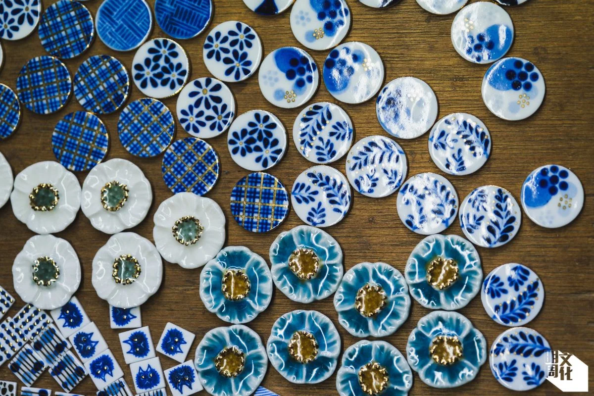 曾經用於壓製大片瓷磚的機器,如今被調整為壓製每片僅有指頭大小的黏土。這些小巧的黏土片經過初步處理後,送進窯裏高溫燒製,之後交由工匠一個一個親手繪製。因此,即使是相同款式的飾品,形狀和圖案也會有些微不同,可以感受到機械化大規模生產無法達到的獨特和精細。、
