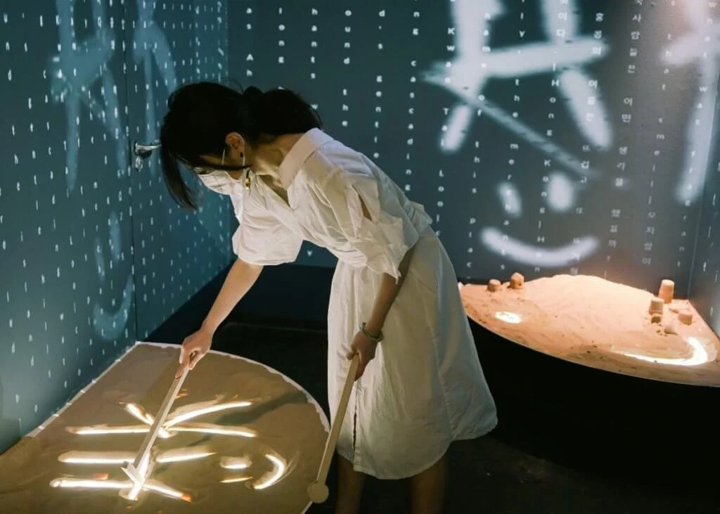 沙盆的設計像傳統的占卜方法「扶乩」,讓觀眾譜寫或畫出心中所想。