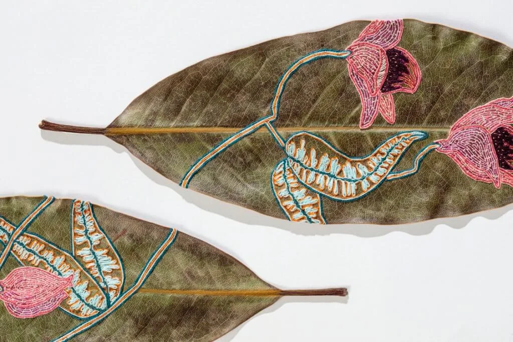 Hillary Waters Fayle藉樹葉刺繡,提醒人們應更積極改善與自然的關係。