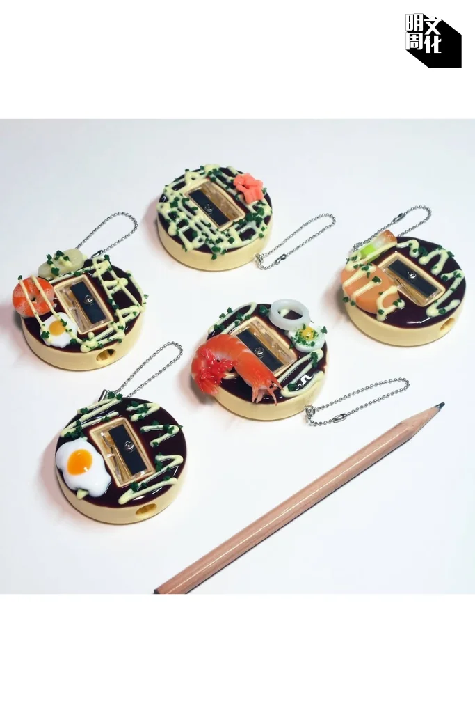 2021年發布的「大阪燒鉛筆刨」堪稱其代表作之一,一推出便廣受好評。Mitiru笑說:「我習慣隨時記錄靈感。有次經過大阪燒店鋪時,突然覺得鉛筆屑與柴魚片有種奇妙的相似感,便決定用CG將這個靈感具象化。」這款作品更獲得調味料大廠「オタフクソース」的青睞,於隔年成功商品化,開賣僅一周,便全數完售。