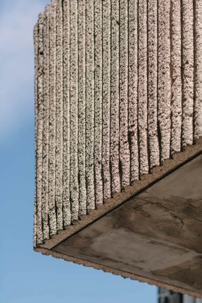 東海工業大廈採用精密的模塊組裝建造, 用上大量麻石、水泥,帶來沉實粗糙的質感。
