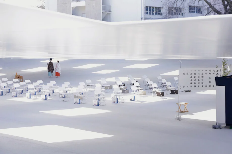 最近,他為神奈川工科大學設計的「KAIT広場」正式完工。此前,他曾為該大學設計工坊,從頭到腳的透明玻璃,配以幾百根像森林的樹木散落在室內的白色柱子,整座建築物顯得輕盈、清透。這次的「KAIT広場」卻與之相反,它是一個近四千呎的低矮寬敞的半開放亭子,內部沒有半根柱子,天花板的鐵板只靠四邊牆支撐。換言之,室內空間完全開放,用家可以完全無拘束地想像和運用這片空間,或坐,或躺,或站,或舉辦市場、表演、討論會……石上曾指,希望這空間「可以讓人放鬆身心,並深入自己的想法,而空間帶來的獨特感覺將激發新的想法。」
