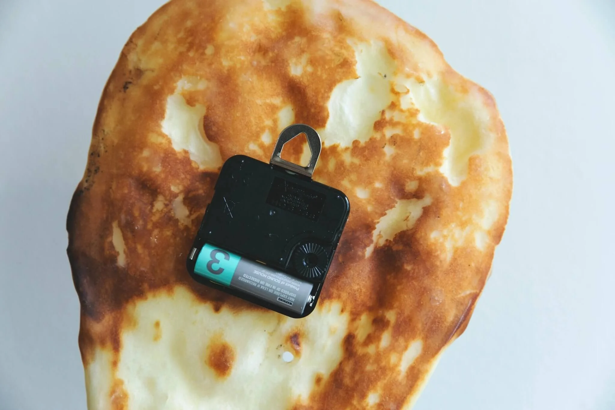 日本藝術家森田優希子,因太愛麵包而創辦「PPAMPSHADE by Yukiko Morita モリタ製パン所」,專門製作各式趣味麵包。最近,她以西班牙畫家達利(Salvador Dali)名作《記憶的永恆》(The Persistence of Memory)為靈感,使用軟身印度薄餅,製成時鐘「今、ナン時」(NAAAAN Time),還原度很高!