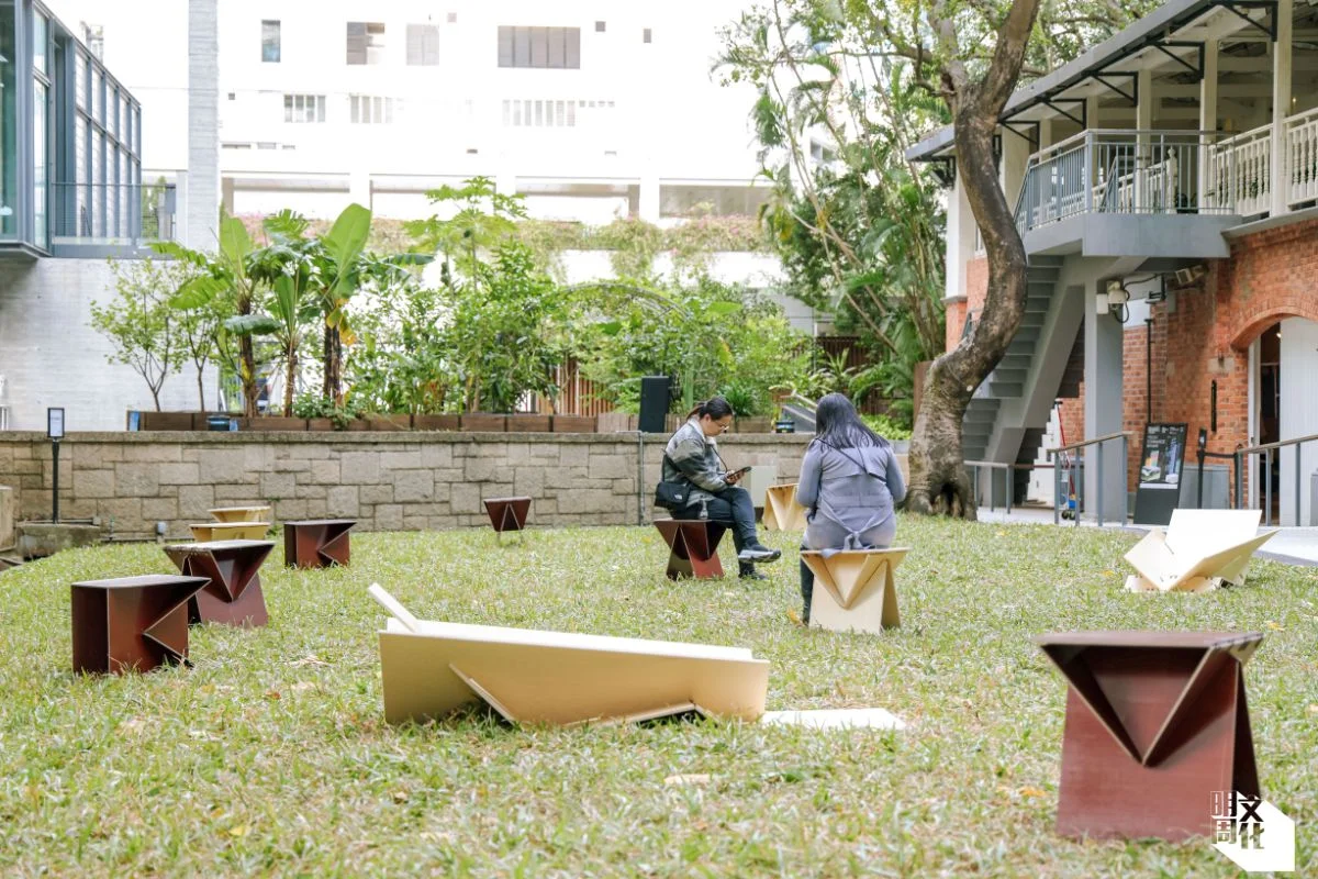 踏上草地,你以為只是平凡的椅子。外貌確是有點奇怪,但又未至於未見過,一張薄片木板椅。坐上去,哦?搖搖晃晃。原來是可變形家私,反轉坐、打斜放又得、攤開變躺椅亦得。你以為已經充分體驗這件展品。殊不知,這一切都被監測着。這片草地受熱像觀測,透過偵測身體熱量,收集觀眾和家具互動的模式,之後再用AI分析,來改良公共空間設計。