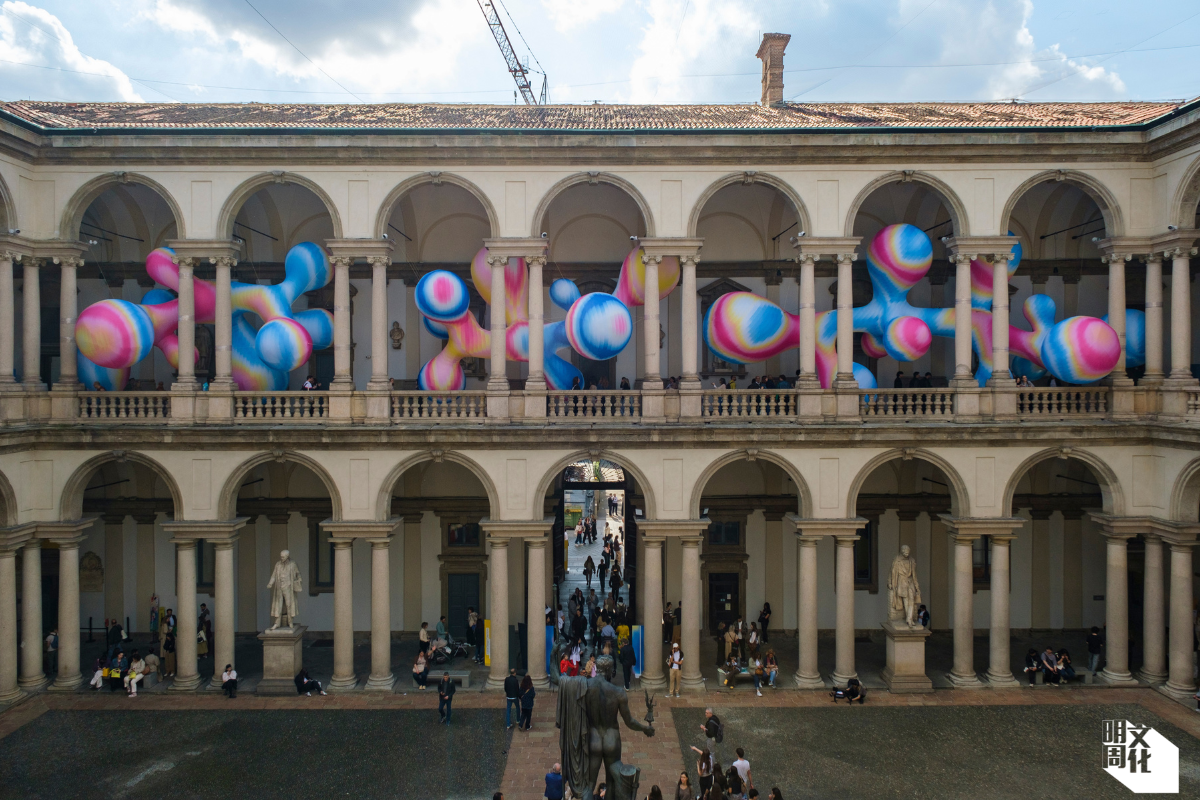去年《光之圖書館》 場地Cortile d‘Onore,今年中庭擺放了American Express和藝術家Sara Ricciardi的氣球裝置Serotonin – The Chemistry of Happiness (血清素-幸福的化學成分) 。