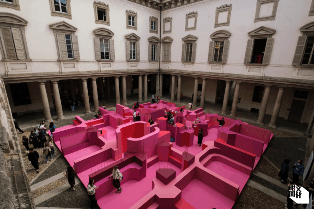 黎巴嫩建築師Lina Ghotmeh在Palazzo Litta,帶來亮粉紅色Metamorphosis in Motion,在建築中庭設置迷宮,分成七區——香水體驗、沉浸式聲音、靜觀位置等。同幢建築的一樓舉行MoscaPartners Variations的新設計展覽,今年主題是Metamorphosis(變態)。