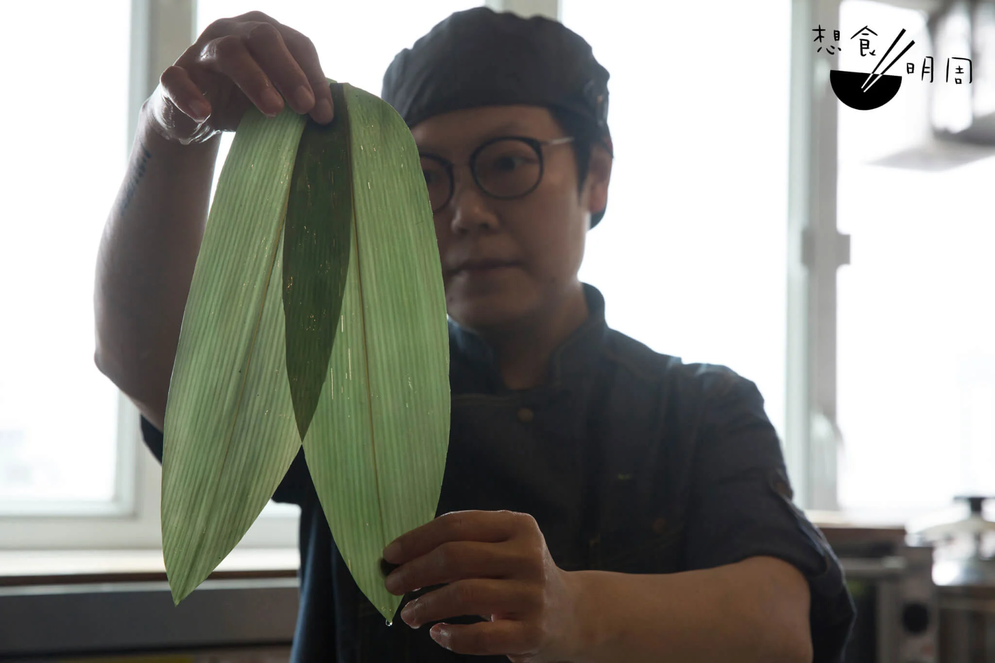 窗前,梁可欣 (Joephy)從盆內溫水取出幾片葉子。揚起時,水滴從尖端處落下;背光望,通透得可以從光線中顯見葉脈。一片清香飄散開來,無須湊近,鼻子都能穿過口罩聞得到。原來這就是新鮮竹葉的魅力。