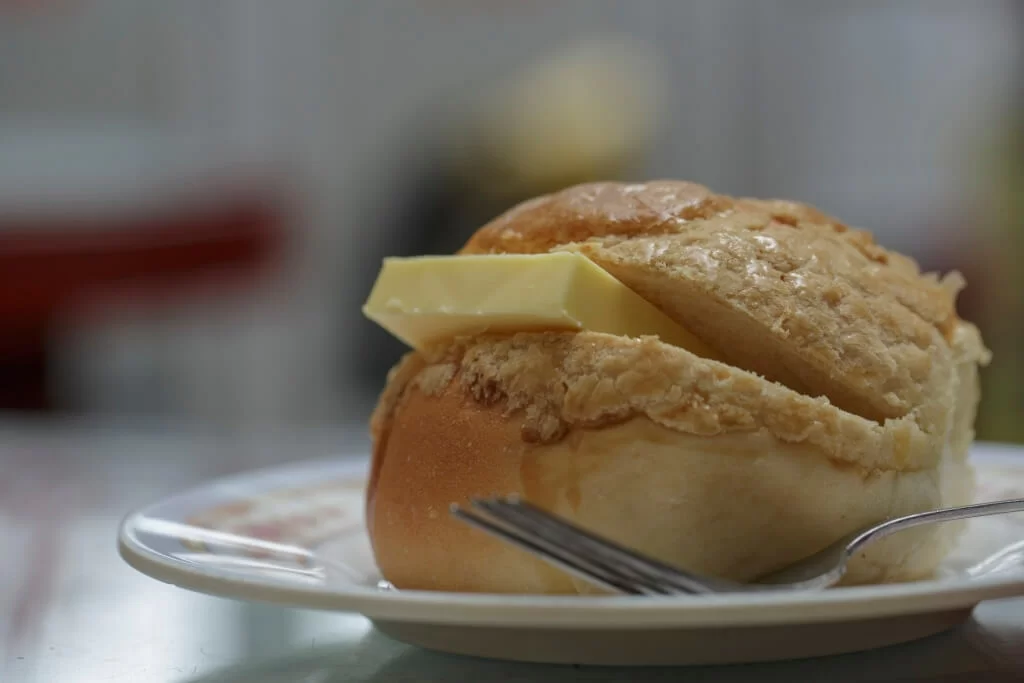 新式茶記不賣包餅,舊式省成本,向工場取貨。少有像這裏,守着傳統,沒讓舊包餅丟失在歷史洪流中。像合桃酥,一般茶記已絕迹,這裏十年如一日,依傳統下豬油,人手搓,放上合桃,焗完鬆化香噴噴。菠蘿油是這裏的招牌,牛油即時由雪櫃拿出厚切,菠蘿包熱辣出爐,冰冷的牛油夾入熱菠蘿包中間位置,一冷一熱、一鹹一甜,包香脆軟身,濃厚的牛油香,內涵滿分。除包餅,奶茶咖啡緊跟其後,一樣重要。