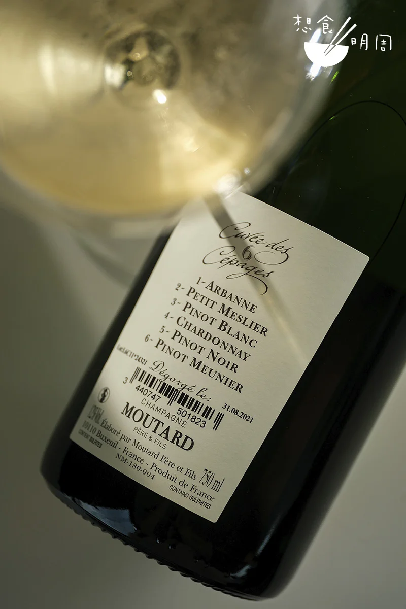 品牌香檳與小農香檳,也許沒有好壞之分,純屬個人愛惡。「小農香檳酒莊總會生產了很多具有特色的香檳,例如用比較冷門的葡萄。就像這枝Moutard Père & Fils『六重奏』,用上Chardonnay、Pinot Noir、Pinot Meunier、Arbanne、Pinot Blanc 及Petit Meslier共六種葡萄。為了不讓某個品種專美,莊主François Moutard決定每個品種只取其六分之一的分量製作。」Rex說。他又指,當為此香檳作分裝瓶時,莊主特別用軟木塞,讓少量空氣進入瓶子,增加酒款的風味,接着再陳釀六年。「這些是區內較罕見的做法,可以做到濃郁的蜂蜜、堅果與多士的香氣,喝起來還有香橙、些許薑味,餘韻無懈可擊。」