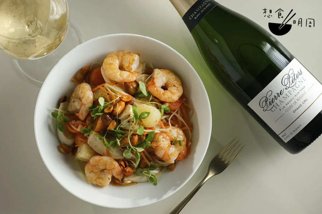 若然是香料味重的烤雞串,又如何?「雞串若配法國A. Margaine,可讓酒喝來有點像印度芒果甜酸醬(Mango Chutney)。此酒沒經乳酸發酵,讓輕快的酒體擁有足夠酸度,而於木桶陳釀時則有開心果、麵包風味。」一枝法國香檳,竟嘗出印度餐的風味。Rex還推薦試試富柑橘風味的Pierre Péters二十四個月熟成,其綿滑口感剛好承托微辣的泰式虎蝦沙律。「若說到穩妥方則,當然是『法國香檳配法國菜』,例如生牛肉他他,菜式具油脂及酸度,正好配Paul Bara Champagne Grand Cru Rosé de Bouzy。」這粉紅香檳中有80%的Pinot Noir,令酒的骨幹更具力量,豐厚、澎湃的紅色水果(Red Fruit)味道;加上車厘子的甜美,渾身個性,卻又與牛肉他他如此和諧。