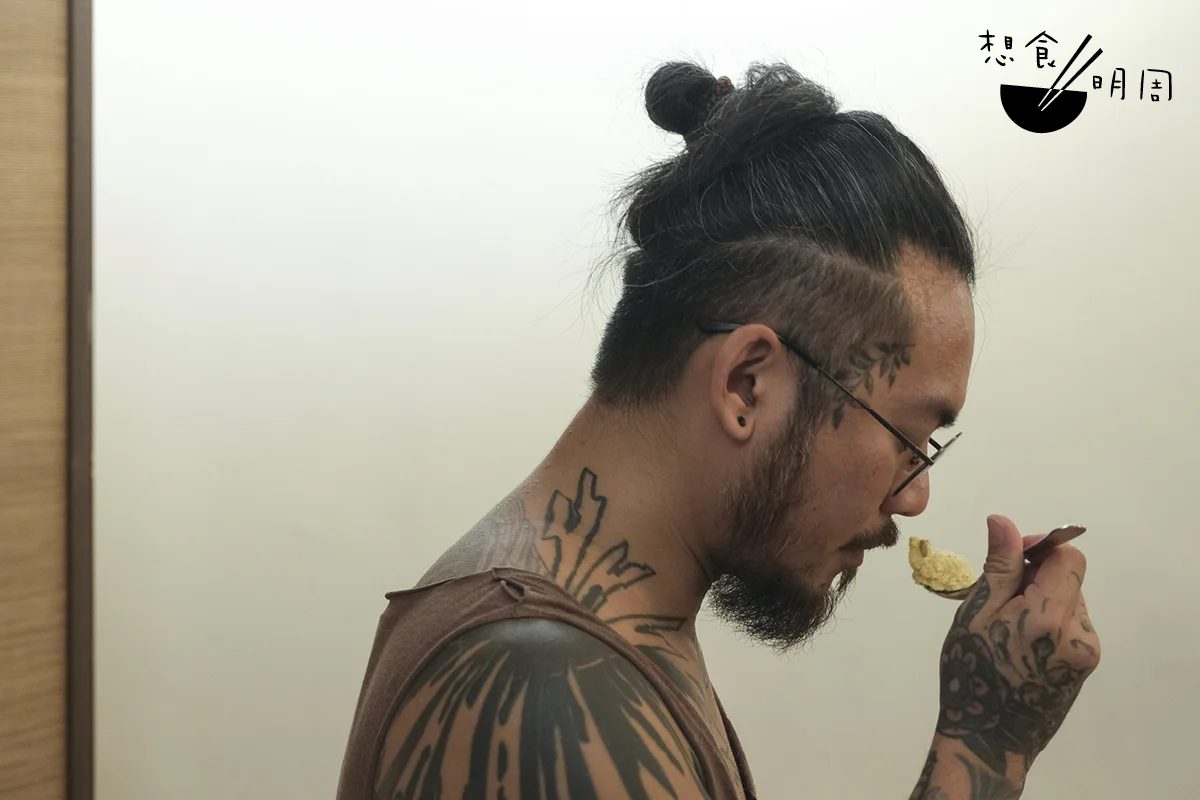 這個空間還有一條「有趣」規矩,要食客輕聲細語,在香港可謂無任何先例,而他一直堅持,因為過往出外吃飯吵鬧的經驗,他和太太都更喜歡寧靜地吃飯。不是不說話,只是小聲一點。對於有客人曾質問「我去圖書館咩,嚟間餐廳點解要靜」,Lester回想起來,眼神堅定地說:「你可以選擇不理解,你不來我做少一單生意,這是我的karma(因果),但這是我的基本底線,我想有一個地方可以安心地吃飯,我不是為了大家,只係為了自己。」Lester記得,開業一年後,有一晚座無虛席,全間餐廳坐滿三十人,即至少十五組對話,但全場都很寧靜,是很舒服的氛圍,他和太太當晚十分感動。「原來我們是可以創造這樣的一個氛圍。」