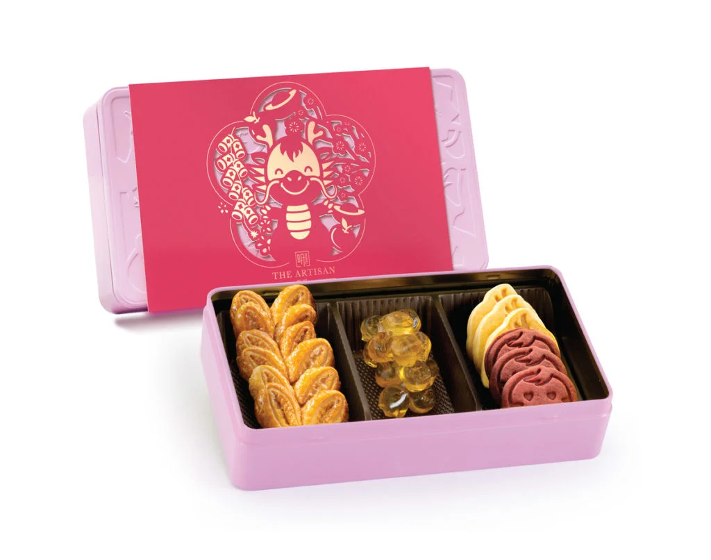 皇玥旗下輕奢品牌明玥亦推出2024新年系列,以龍為主題,配合粉紅色鐵罐,喜氣洋洋。新年奇趣精選禮盒內有4款餅食,為你帶來滿滿驚喜。