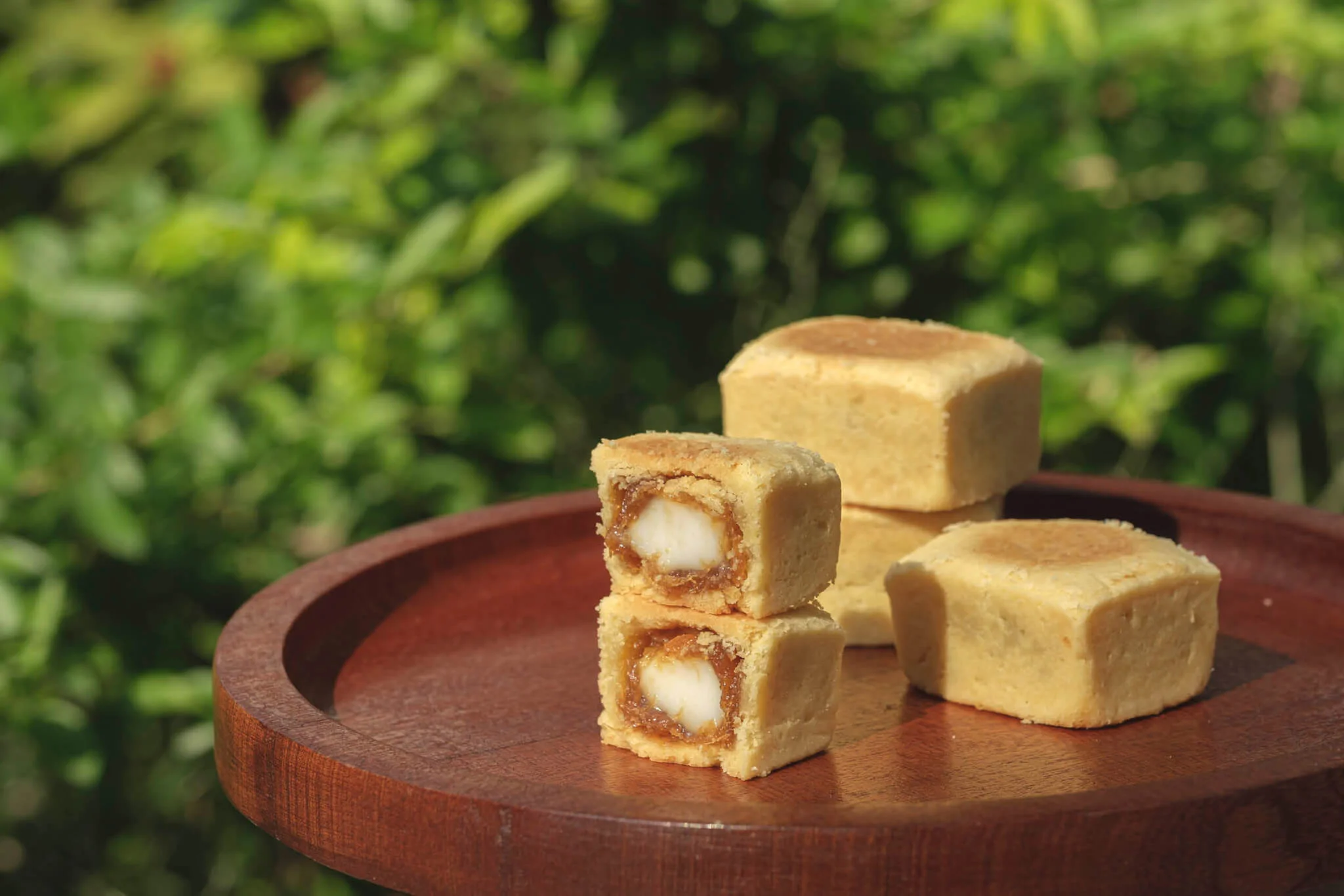 盒裝發售的酥餅分有兩種口味,其中一款正是麻糬鳳梨酥。站在店門前拆開享用,外層很鬆脆,一咬即碎。絲絲鳳梨肉與中央的麻糬,像是難捨難離,混和在一起又甜又酸又煙韌。老閣Tim在忙碌中回過頭來問:「好吃嗎?還有蛋黃鳳梨酥與南棗核桃呀,要試一口嗎?」
